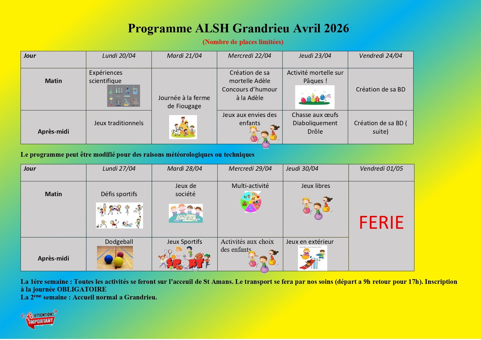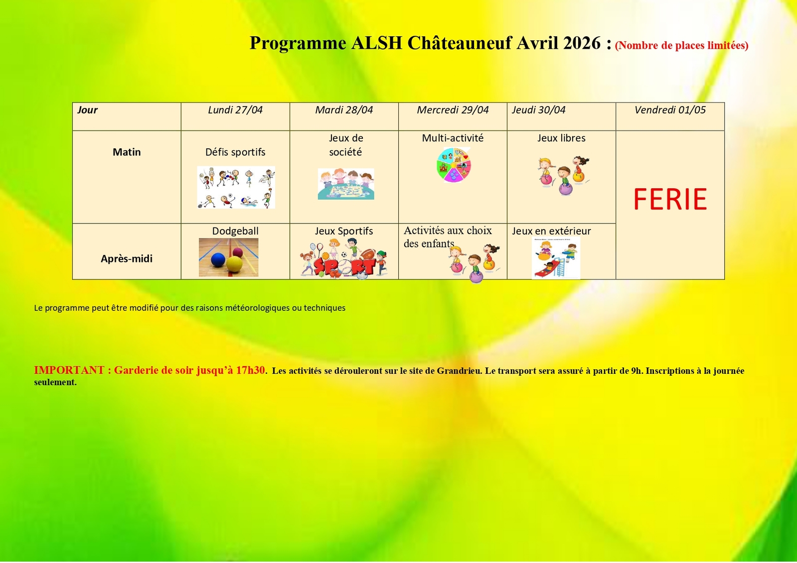 Programme ALSH vacances de Pâques